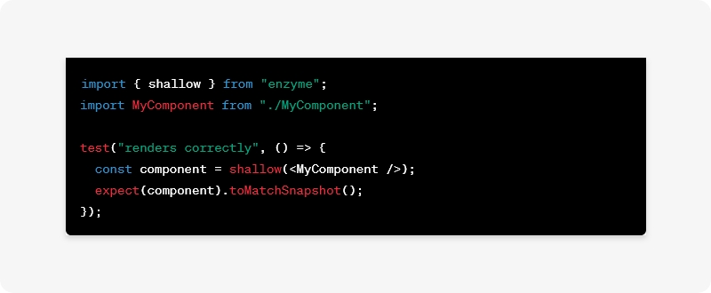 In this example, we’re using the shallow method to render our component without rendering its children. We’re then using Jest’s snapshot testing to capture the output of our component and compare it to the previous snapshot.