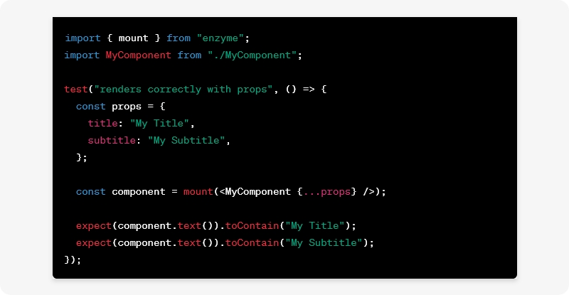 In this example, we’re passing props to our component and checking whether it renders the correct output.