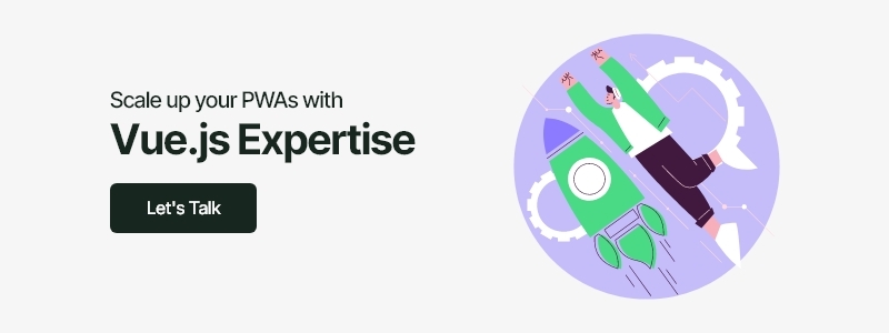 Conclusion To summarize, Vue.js is an excellent choice for developers seeking to create scalable, high-performance, and top-quality Progressive Web Applications (PWAs). With its lightweight and efficient JavaScript framework, Vue.js provides a plethora of tools for building cross-platform PWAs with enhanced performance, offline functionality, and a superior user experience. Its component-based architecture, coupled with its large and active developer community, makes it an ideal solution for developers looking to build PWAs with speed and efficiency. Therefore, if you are contemplating building a PWA, Vue.js is unquestionably a framework worth exploring.